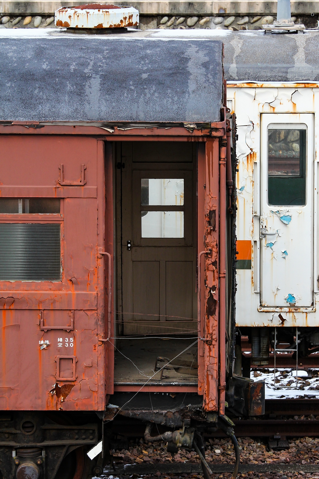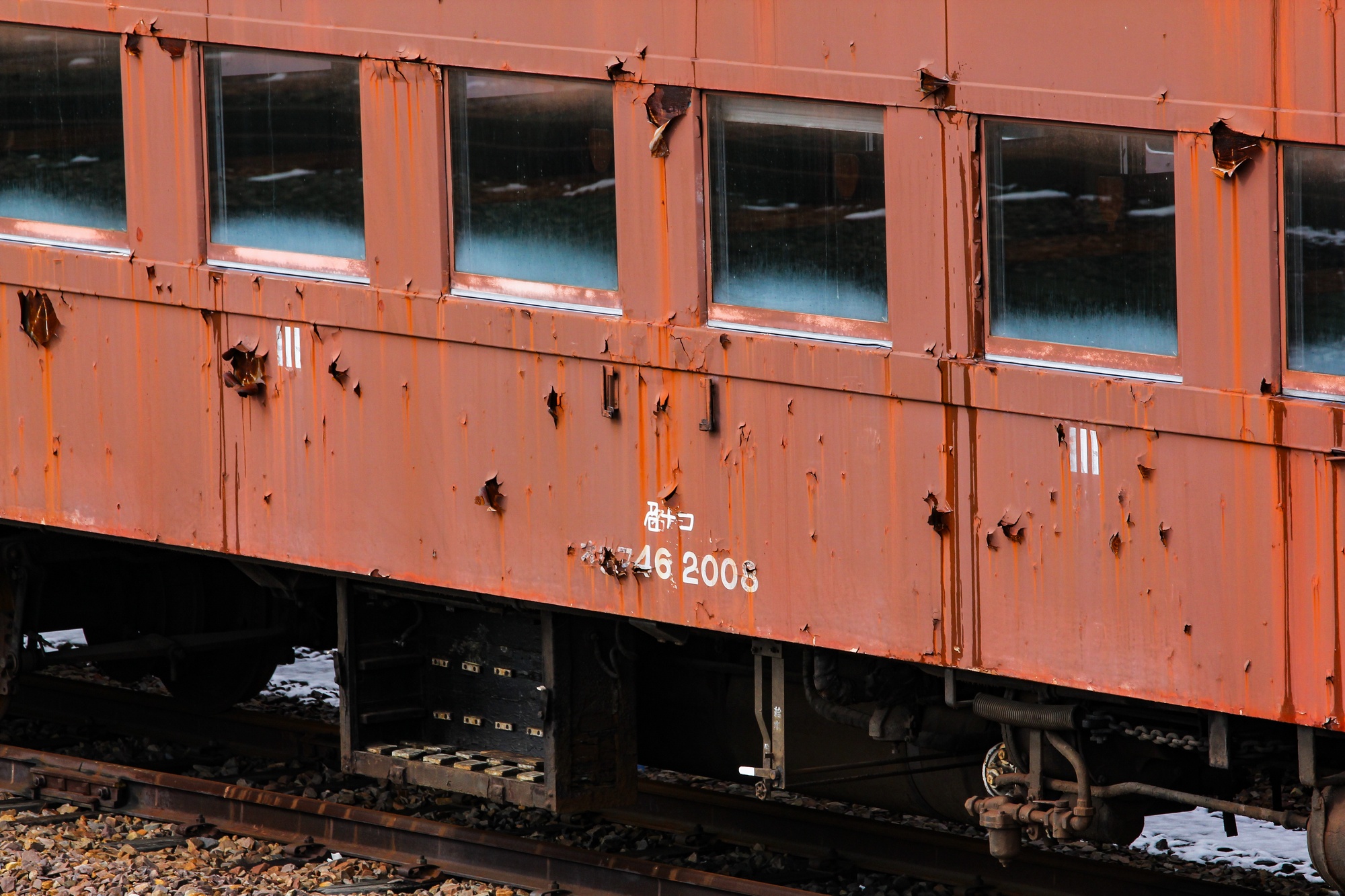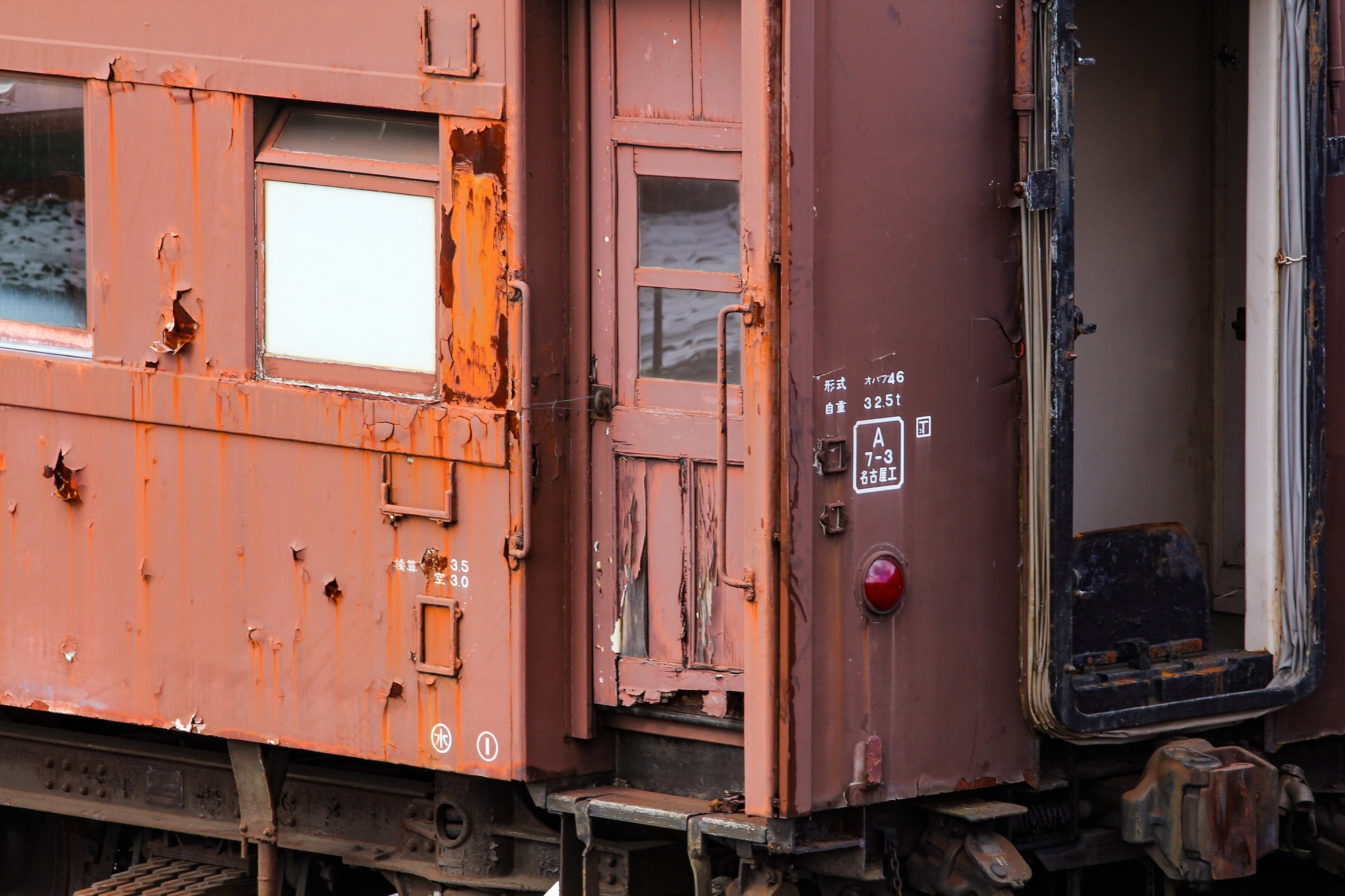 オハフ46 2008の木製客扉は、下部が朽ちていました。