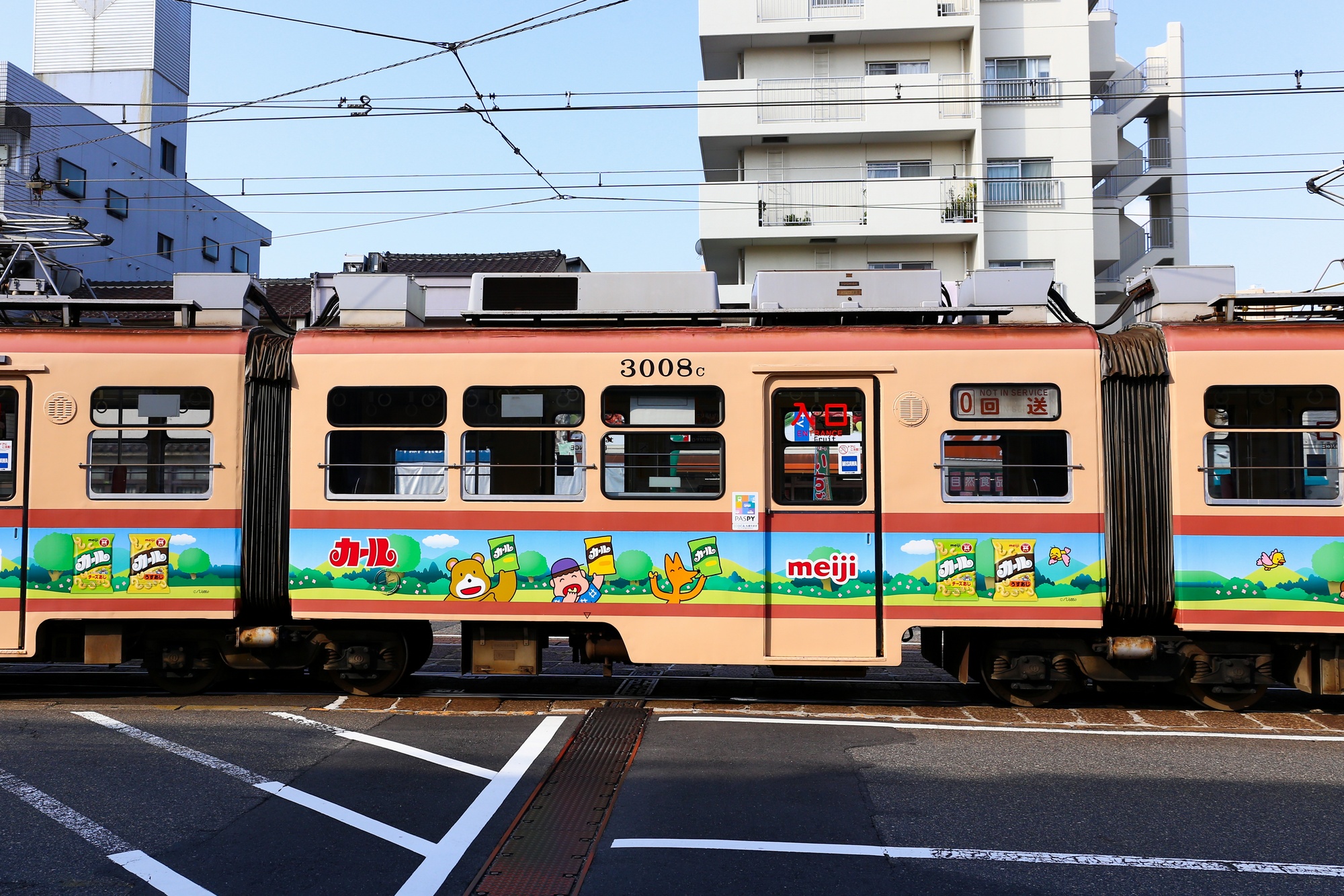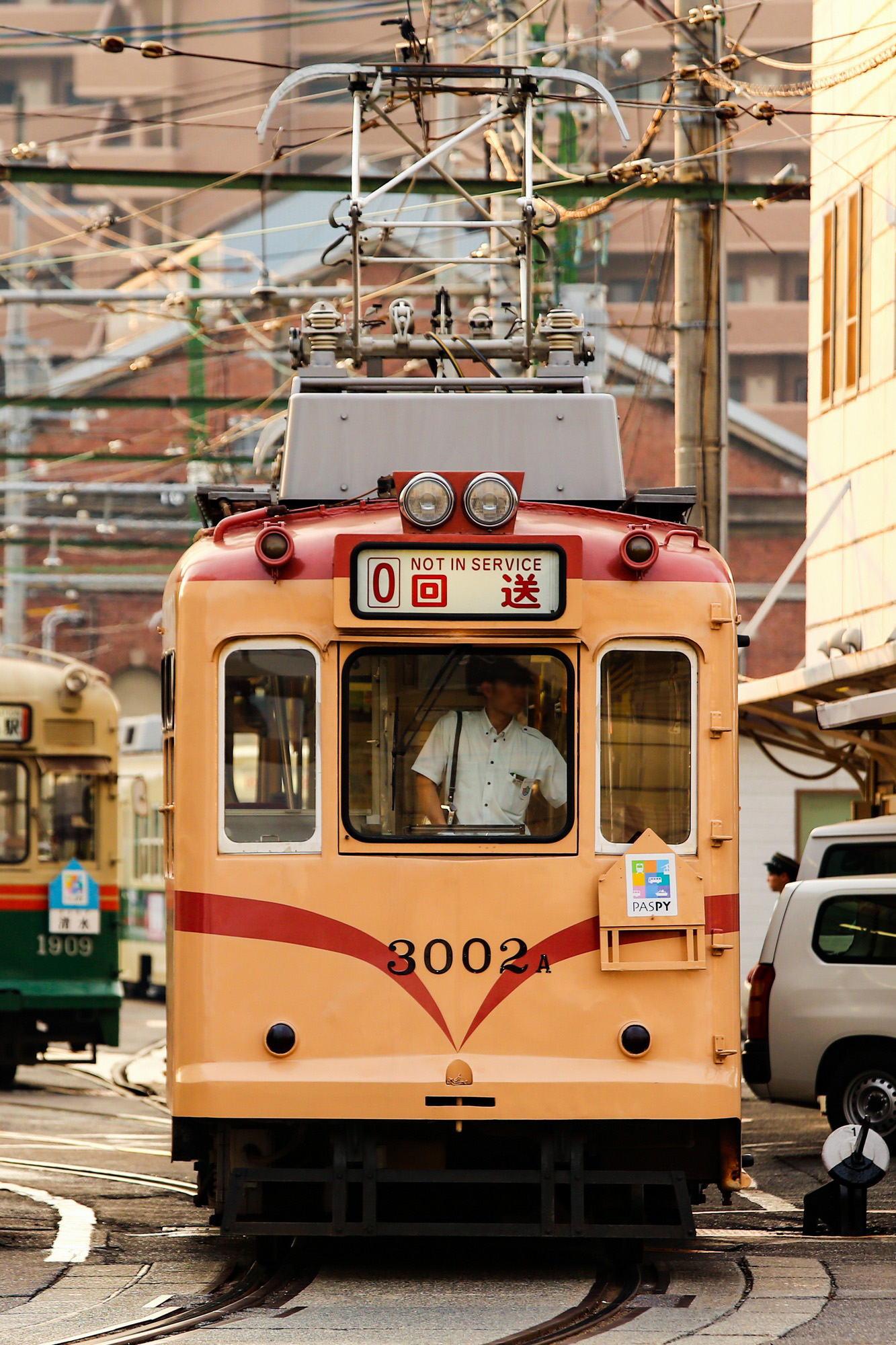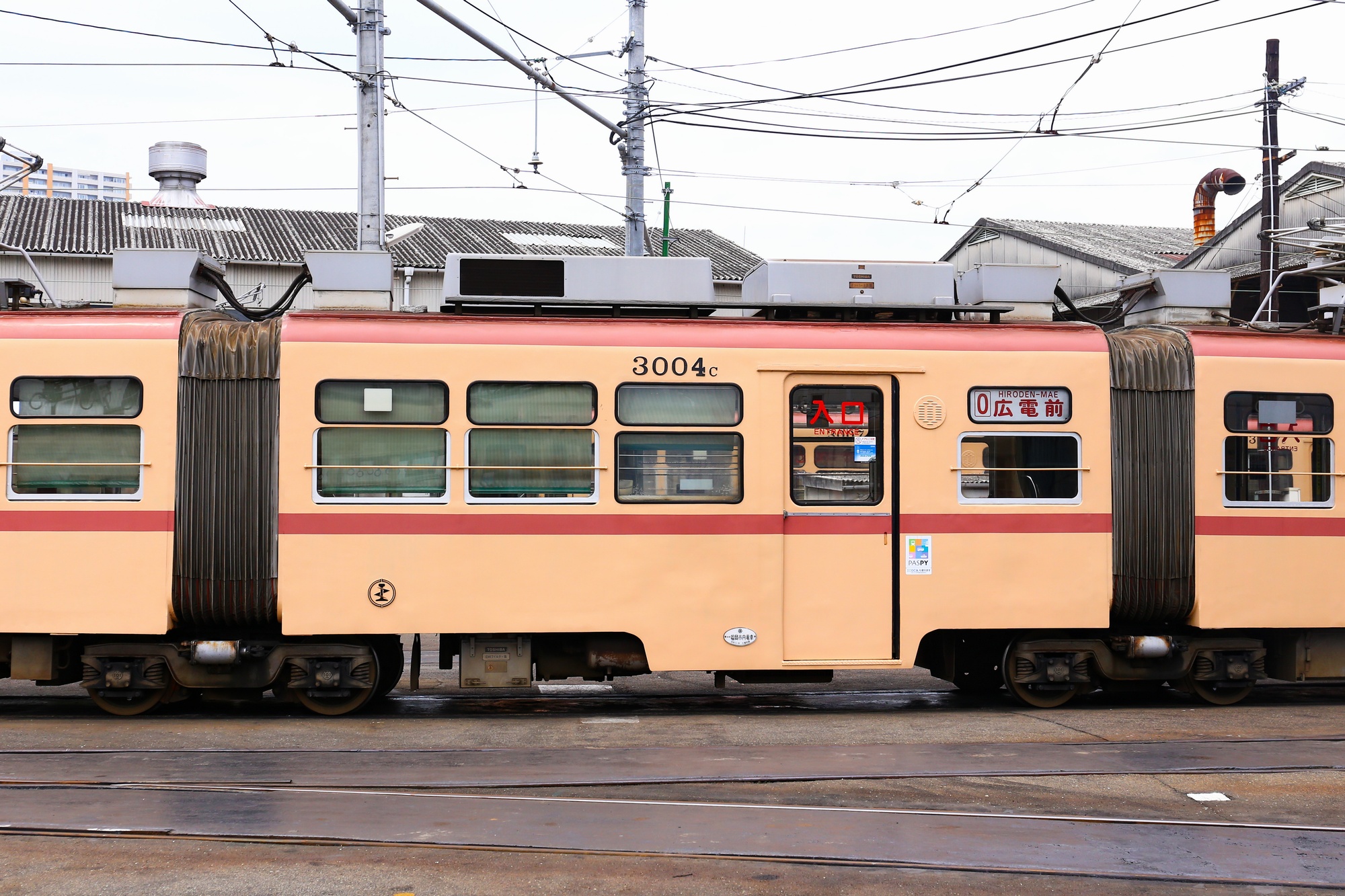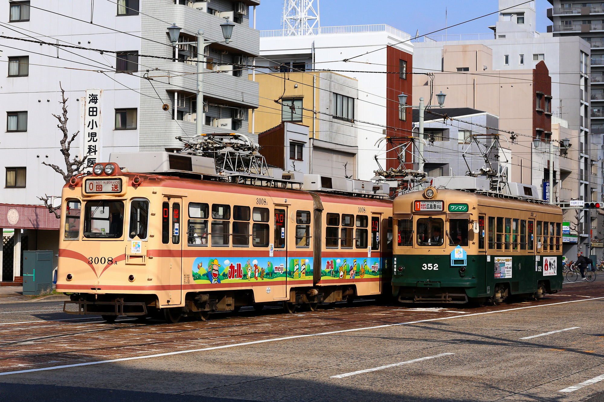 90年代後半までは主に宮島線直通運用に就いていましたが、後継車の導入により次第に市内線へ活躍の場を移していきました。