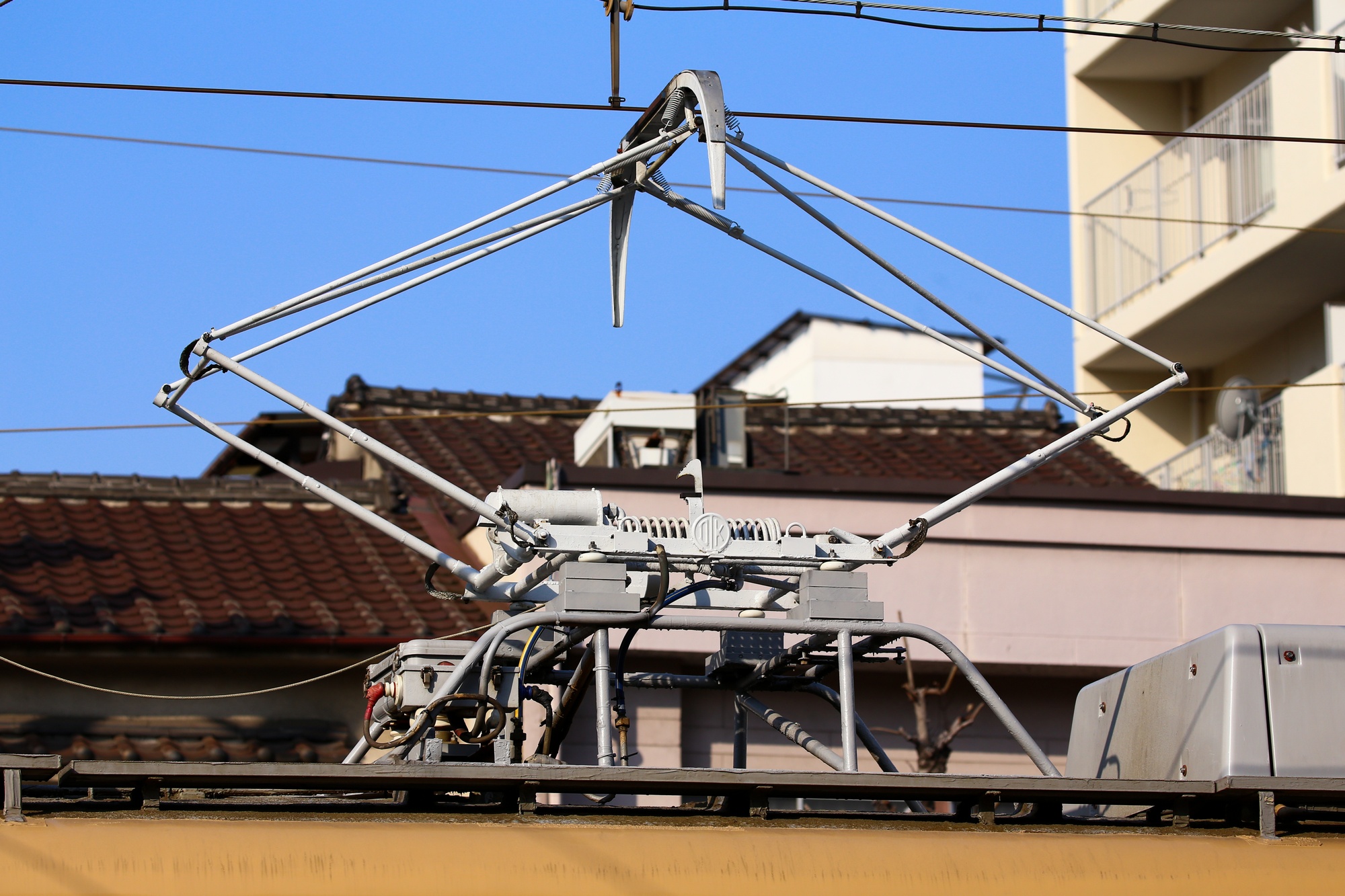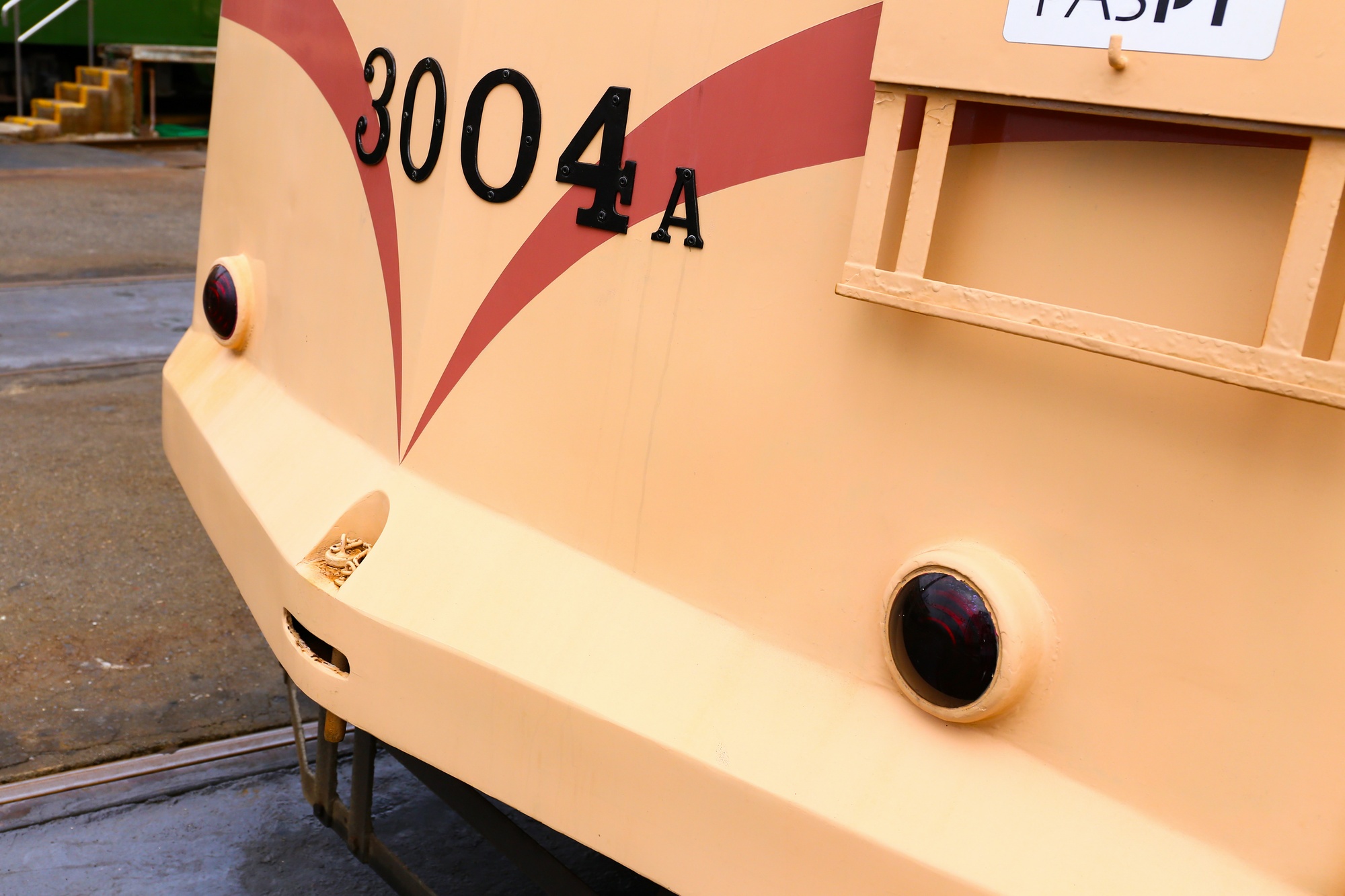 3000形のヘッドライト台座は形態差があり、3002号は逆台形のタイプになっている。